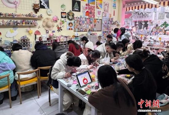 2月11日,山东烟台一家手作馆,“拼豆”吸引不少年轻人参与。杨馥宁 摄