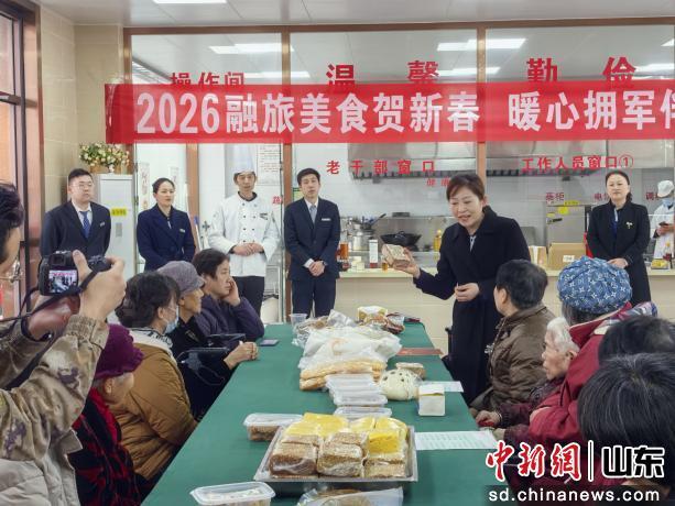 2月4日,酒店副总经理曹晓霞带队,携军队客户管家队伍及毓璜顶宾馆餐饮骨干,走进烟台警备区第三干休所,为老首长、军属及官兵送上新春祝福与特色美食。活动现场暖意融融,烟金大肉包、面鱼、枣糕等佳肴整齐陈列,为军管家详细介绍美食特色,厨师长现场分切品鉴。老首长与军属们细细品尝,对精湛厨艺赞不绝口,不少人当场下单,希望将这份军民温情的烟火味带回家。此次活动以美食为媒,既添新春喜庆,更拉近了彼此之间的距离。