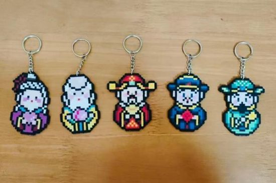 亓楚钧制作的拼豆春节挂饰 亓楚钧供图