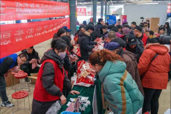 “买年货还能学法律、领礼包,这样的大集太对味了!”2月5日,烟台福山区张格庄年货大集上,“赠福迎春”点位前早早就排起了长队,政法干警把法治宣传手册、反诈折页、安全海报,与红彤彤的春联、福字和实用手提袋、毛巾等年货打包成“新春法治大礼包”,上千份礼包承载着法治知识随年货走进千家万户。