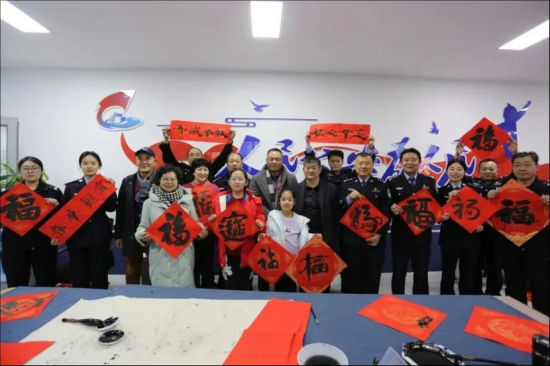 墨香融法韵,福暖警民心。青岛公安携手文化小分队与爱心工作室走进派出所,一场兼具年俗韵味与法治温度的送福活动暖意融融。“警徽闪耀半生谱写忠诚曲 初心不忘赤诚守护万家安”等定制春联,字字镌刻着人民警察的责任担当,创意“福”字饱含爱民为民的深厚情怀,让警营年味与法治底色相映成趣。