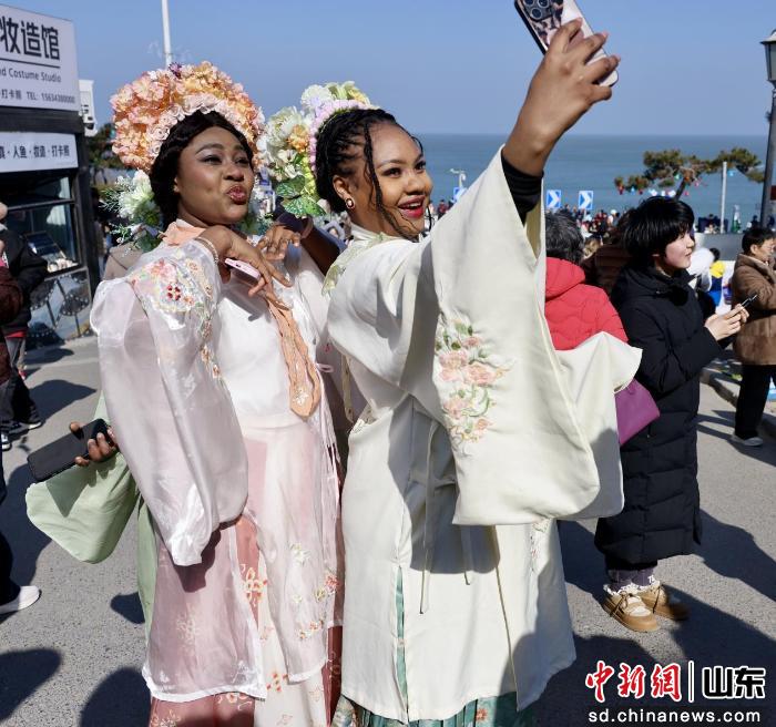 “这是我第一次过中国新年,也是第一次穿汉服,威海人的热情和这里的文化让我深深着迷。”来威海仅三周的加纳游客AK身着改良款汉服,难掩兴奋之情。与她一同体验的Vanessa则对海边过春节的独特体验赞不绝口:“在这样美丽的滨海街区庆祝新春,感觉太奇妙了!”居住威海四年的Ken Kresti带着妹妹们全程参与,他感慨道:“威海是座美丽的城市,今天的汉服体验让我们感受到了中国文化的魅力和热情好客,我们都爱上了这里。”
