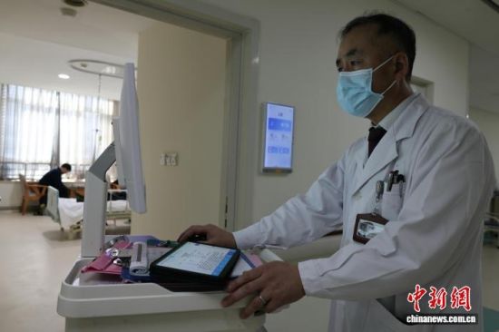 在山东省立医院东院区保健神经内科病房,卢林查看患者诊疗记录。赵晓 摄