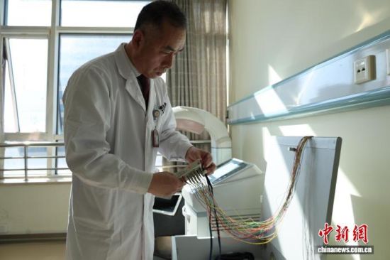 卢林在科室调试PSG多导睡眠监测仪器。赵晓 摄