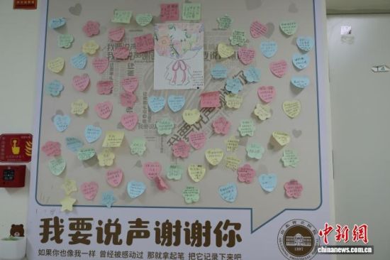 山东省立医院东院区保健神经内科病房外的展板,贴满患者和家属的感谢语。赵晓 摄