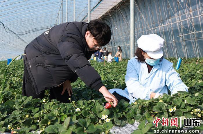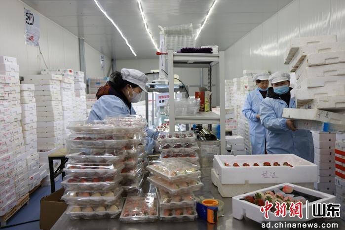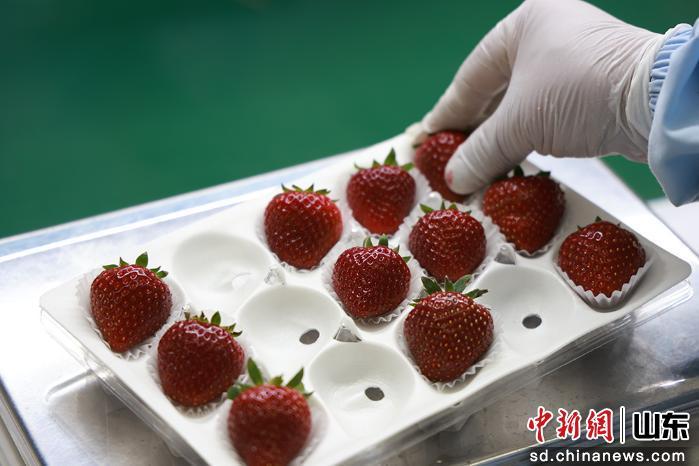 中新网山东新闻2月22日电(王娇妮 栾钦程 张晓瑜)年味漫乡村,暖棚春意浓。春节假期,山东烟台栖霞市官道镇的温室大棚里,一颗颗色泽鲜艳、个头饱满的草莓缀满枝头,正被工人熟练地分拣打包,即将通过冷链、搭乘航班,出口至新加坡、泰国等国家和地区,成为一份来自中国乡村的“新春礼物”。