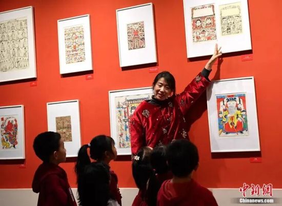 武强年画博物馆,孩子们在看《灶王爷》年画。苏小立 摄