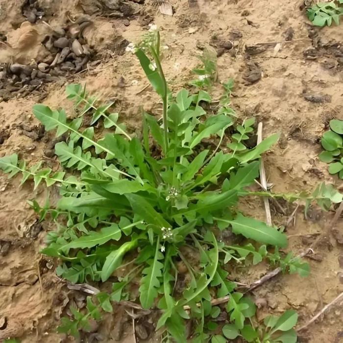 叶片呈莲座状贴地生长,边缘有不规则羽状浅裂,质地柔软。