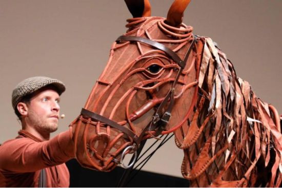 根据英国著名作家Michael Morpurgo同名小说改编,并由英国国家剧院制作的舞台剧《战马》在香港上演时,Shaun McKee (Joey马头木偶演员) 在表演。中新社记者 洪少葵 摄