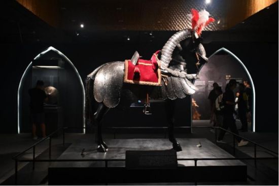 钢铁与荣耀:欧洲骑士盔甲与文化展”在甘肃兰州甘肃省博物馆开展。图为展出的马铠。中新社记者 李亚龙 摄