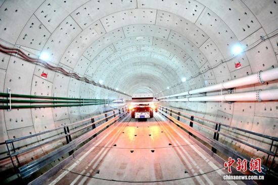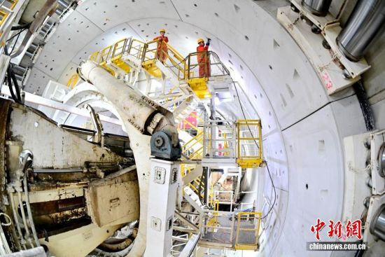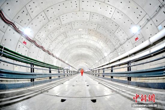 3月8日,青岛胶州湾第二隧道项目施工正酣。该项目是世界建设规模最大、长度最长、综合实施难度最高的海底道路隧道,采用明挖、盾构和钻爆法组合工法施工。该项目主线南线盾构段由中铁十四局集团负责施工,采用“海天号”超大直径盾构机掘进,能完成隧道开挖、衬砌、出渣等一体化作业,如同在海底深处“搭积木”般精密施工。图为工人在成型隧道内进行巡检。丁翔 摄
