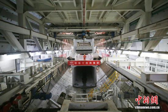 3月8日,青岛胶州湾第二隧道项目施工正酣。该项目是世界建设规模最大、长度最长、综合实施难度最高的海底道路隧道,采用明挖、盾构和钻爆法组合工法施工。该项目主线南线盾构段由中铁十四局集团负责施工,采用“海天号”超大直径盾构机掘进,能完成隧道开挖、衬砌、出渣等一体化作业,如同在海底深处“搭积木”般精密施工。图为工人正进行隧道管片的吊运作业。丁翔 摄