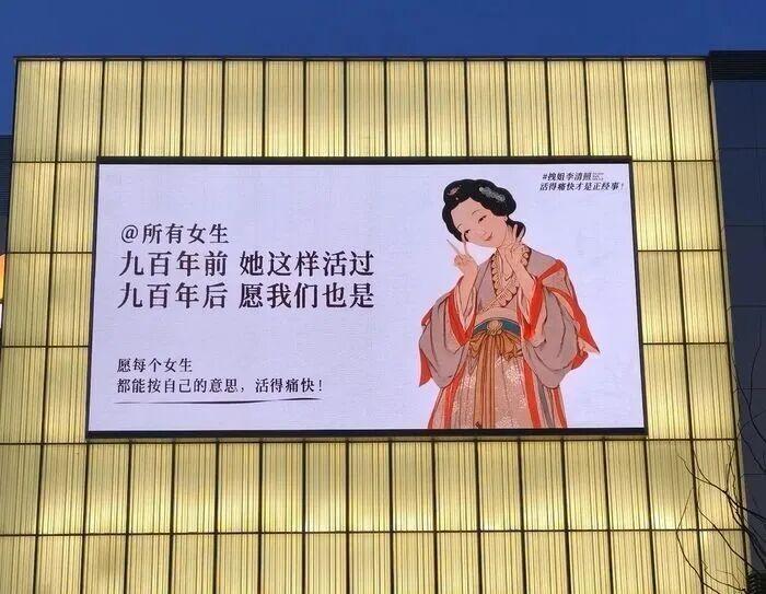 这个三八妇女节,济南一座商场的大屏,被一位900多年前的“山东老乡”——李清照刷屏了。