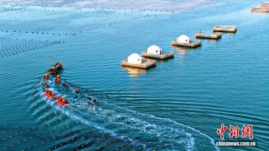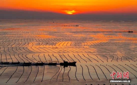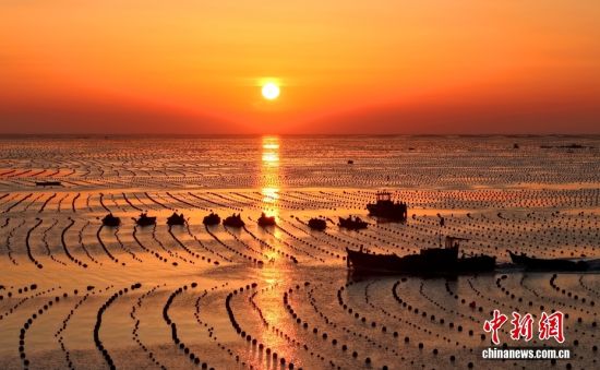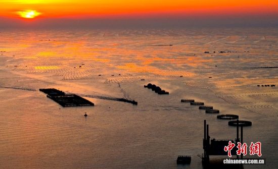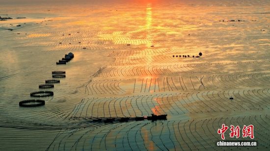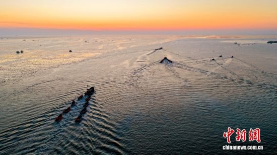 3月10日,山东省荣成市爱伦湾海洋牧场,养殖工人驾驶船只身披美丽的朝阳,奔赴海带养殖区收获鲜海带。对养殖区鲜海带间苗收割投放春季市场,既为海带后期生长预留生长空间,提高海带品质和产量,又可拓宽春季蔬菜市场,提高养殖收益。山东荣成是我国海带主产区,养殖海带18万亩,海带养殖面积产量占全国的40%、山东省80%以上。图/CNSphoto 杨志礼 摄