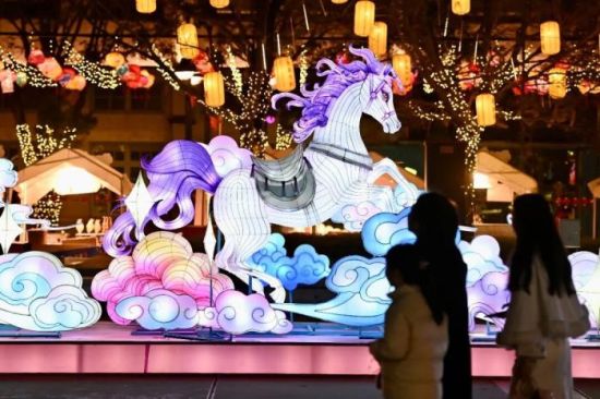 2026年3月2日,福建福州中国船政文化园灯火璀璨,市民纷纷前往参观正在举办的第二十四届 “两马同春闹元宵” 灯会。图为马造型灯组吸人眼球。 中新社记者 王东明 摄