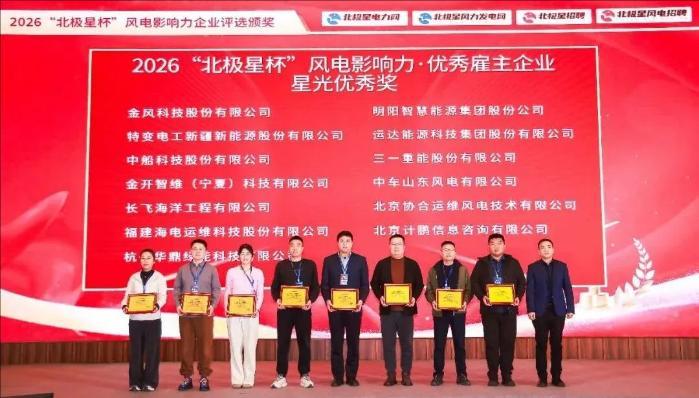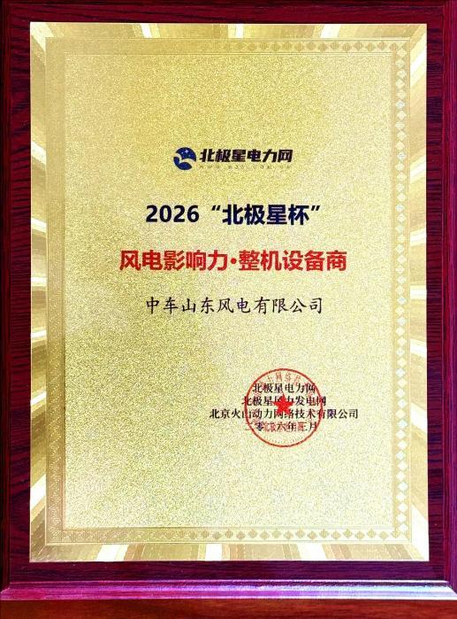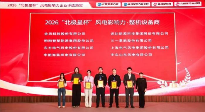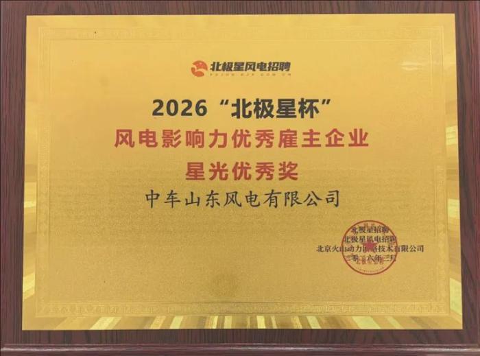 中新网山东新闻3月11日电 3月10日,第五届“北极星杯”风电影响力企业评选颁奖典礼在北京举办。大会公布了2026“北极星杯”风电影响力企业评选结果,中车山东风电公司凭借深厚的产业积淀与技术创新能力,成功获得“风电影响力·整机设备商”“风电影响力·优秀雇主企业星光优秀奖”两项荣誉,公司在风电机组研发、制造及全生命周期服务等方面的综合实力再获权威认可。