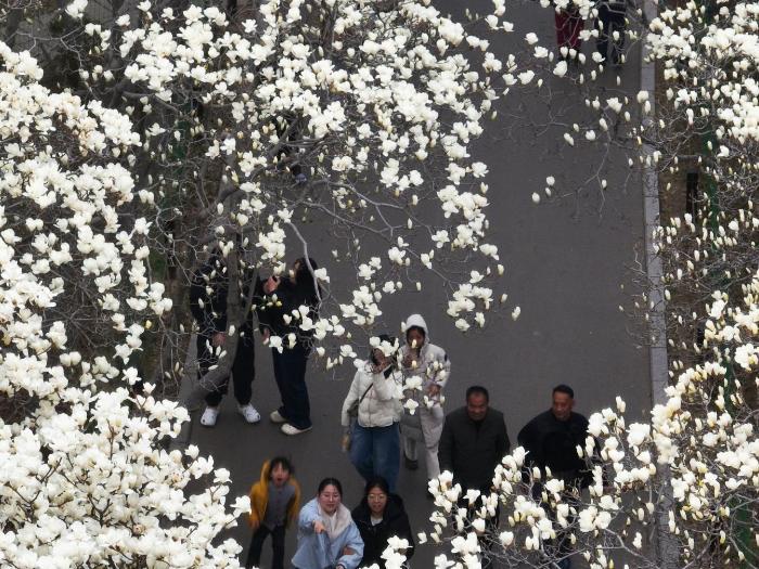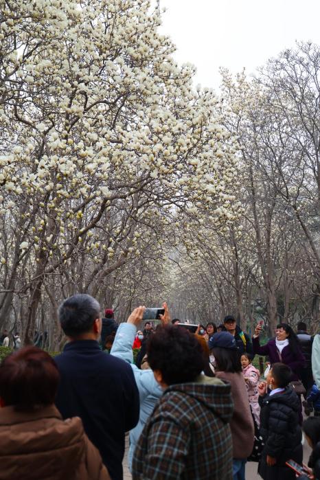 笔者3月14日在现场看到,百花公园玉兰大道已成为一片白色花海,上千株玉兰次第绽放,有的含苞待放,圆润饱满似白玉雕琢;有的肆意舒展,花瓣层层叠叠,素净雅致中带着几分灵动。
