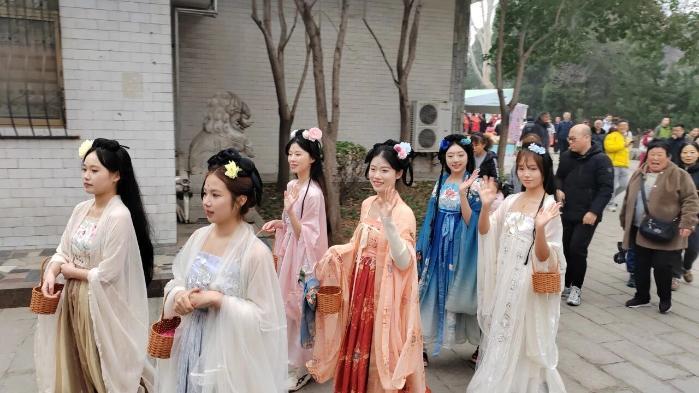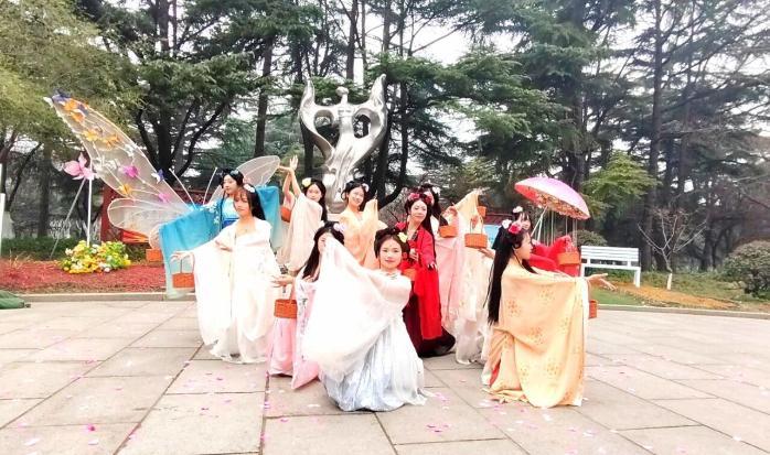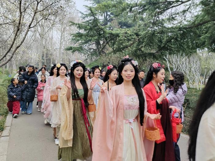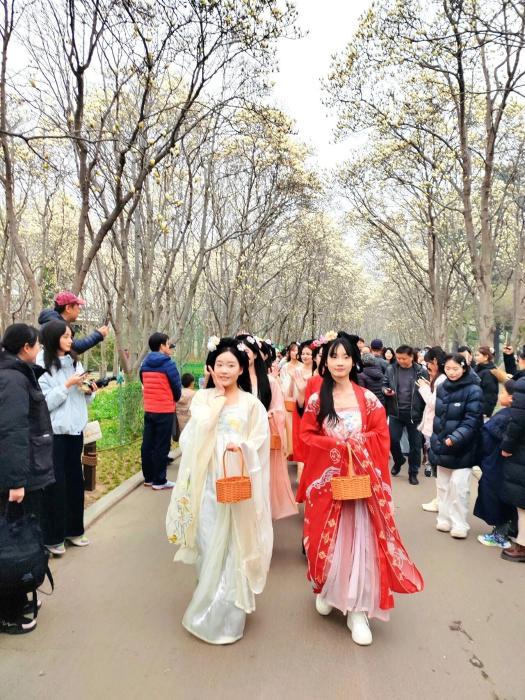 随后,十二位身着汉服的花仙子广袖飘飘,沿玉兰大道迤逦而行,或执团扇、或撑花伞、或提花灯,衣香鬓影与灼灼春花交相辉映,成为现场最动人的流动风景线。