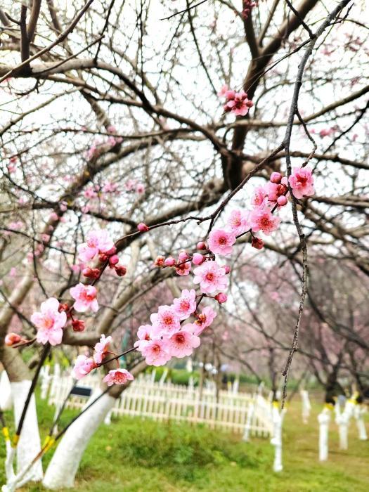 ?美人梅:3月下旬-4月上旬,喷泉广场北侧、同元楼西侧,粉白相间;