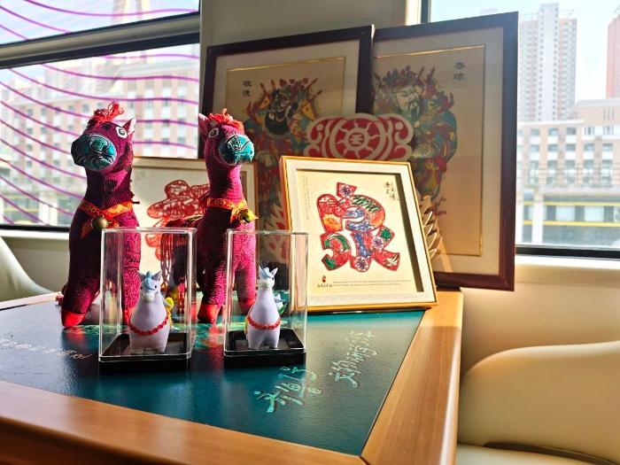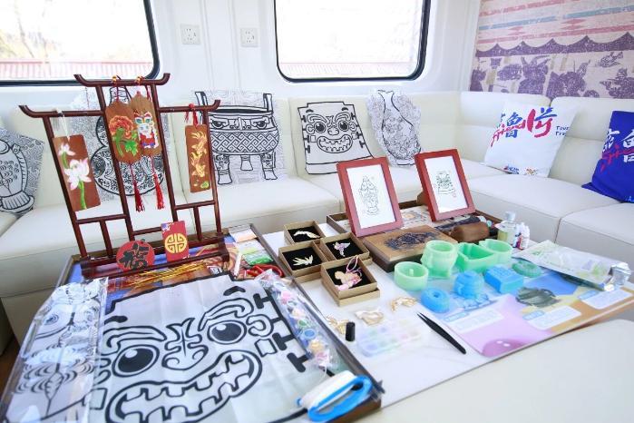 列车上还展示聊城葫芦、济南皮影等非遗产品,可供选购留念。