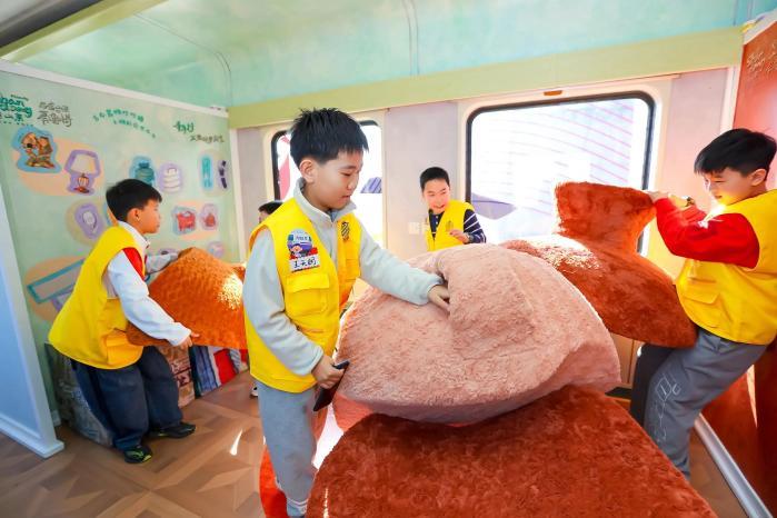 娱乐车厢更是亮点纷呈,不仅复刻汉画像石经典场景,还设置了文物森林、古今器物连连看等十多项互动游戏。