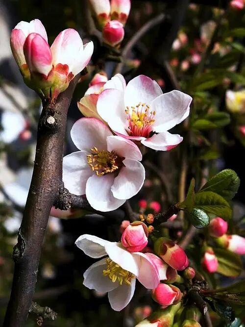 “暖气潜催次第春,梅花已谢杏花新”。杏花三月中下旬盛开,初绽带淡淡绯红,花萼鲜红外翻,无花梗紧贴枝条而生,枝干深褐坚硬。济南张夏、烟台牟平的万亩杏园,花开时如云似雪,是齐鲁经典春景。