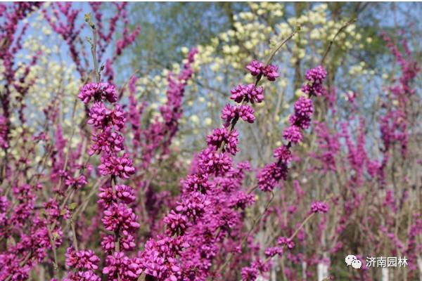 紫荆三至四月开花,无叶先花,紫色小花密生于枝干,如米粒簇簇,辨识度极高。在庭院与公园中,紫荆以独特花姿,成为春日里一道别致风景。