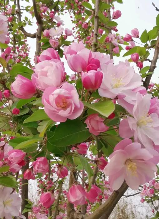 海棠素有“花中神仙”美誉,为齐鲁春日名花。西府海棠花梗粗短、花朵朝上,初开粉白渐变;垂丝海棠花梗细长、花朵下垂,娇柔妩媚;北美海棠花大色艳,叶片带紫;贴梗海棠为灌木,花贴枝而生、无花梗,属木瓜属。四种海棠并称“海棠四品”,次第绽放,香韵满庭。