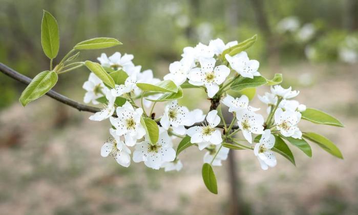 梨花四月盛放,素白如雪,成簇开放,花梗修长,花药紫红如星,与其他春花形成鲜明区别。“千树万树梨花开”的盛景,在山东梨乡随处可见,清雅脱俗,香风满径。
