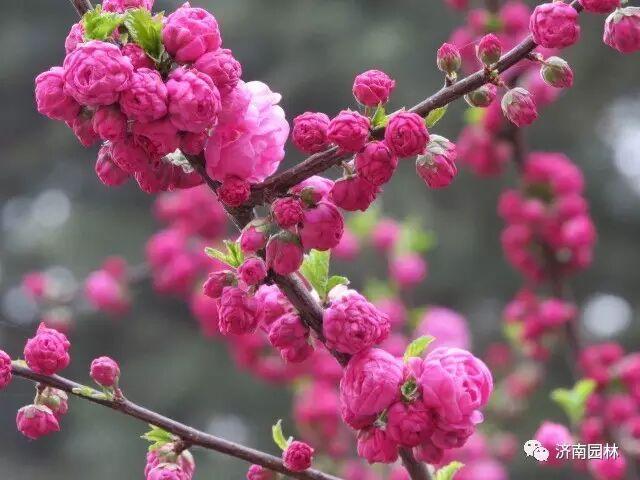 榆叶梅因叶似榆叶而得名,重瓣繁花密缀枝头,花色粉红艳丽,常被误认作桃花。其叶片纹路独特,与桃、李、樱区别明显,是山东城市绿化带中最常见的春日花卉之一。
