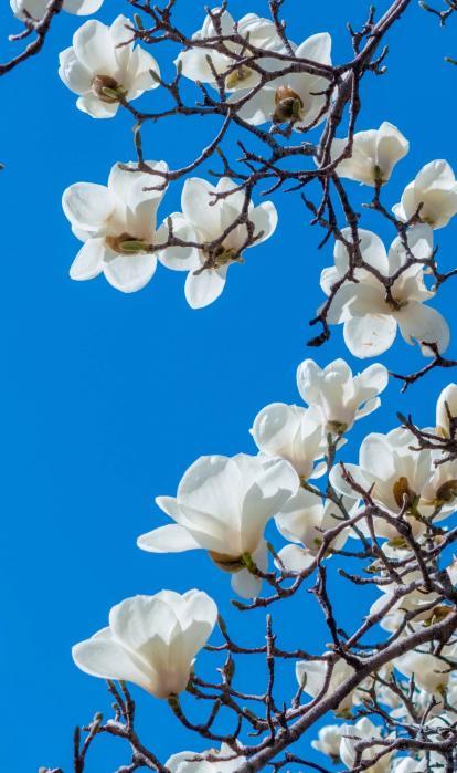 玉兰傲立早春,二至三月迎风绽放,白玉兰高洁、紫玉兰艳丽、二乔玉兰温婉,花形硕大亭亭玉立。在济南百花公园、趵突泉公园等地,玉兰先花后叶,满树繁花,尽显典雅大气。