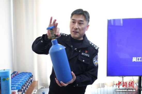 吴江勇在介绍“笑气”的危害。周艺伟 摄
