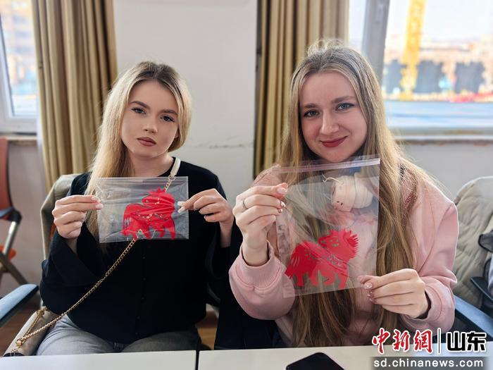 外国青年展示剪纸作品。刘辰 摄