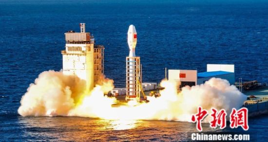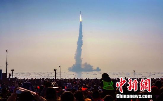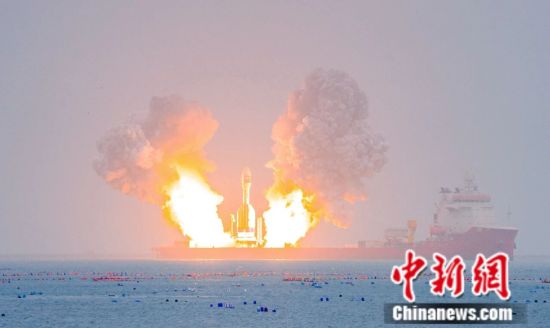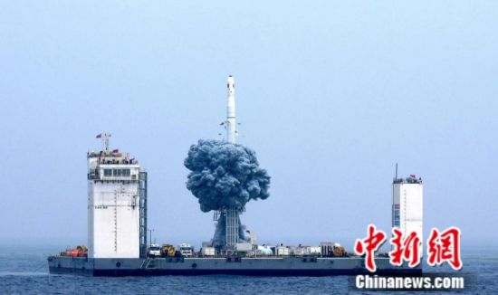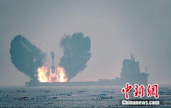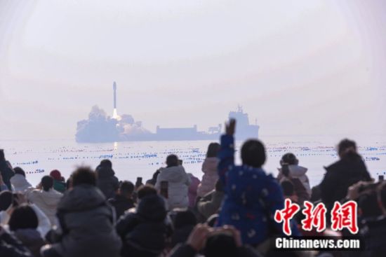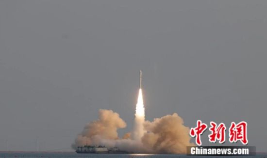 中国固体运载火箭首次近岸海上发射。海阳市委宣传部供图