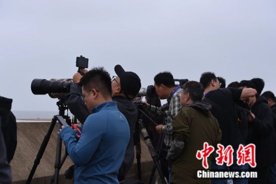 2025年10月,山东海阳,摄影爱好者在等待捕捉火箭升空的瞬间。王娇妮 摄