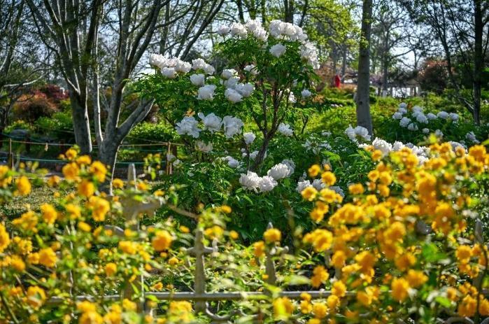 花绽枝头层层舒展,与亭台绿茵相映成画,木绣球、流苏等花木同开,乘地铁4号线可达,免费入园尽赏春日雅韵。