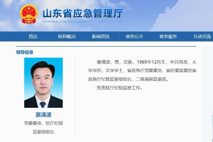 日前,山东省应急管理厅官网更新显示,窦清波已任山东省应急管理厅党委委员、省纪委监委驻省应急厅纪检监察组组长、二级高级监察官。