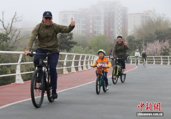 4月18日,“好运山东”2026日照市“海洋大集”暨“骑遇日照”阳光海岸绿色骑行季活动启幕。近200名骑行爱好者迎着海风,骑行在山东日照山海天旅游度假区阳光海岸绿道,畅享滨海风光。“骑遇日照”自2023年创办至今已举办17期主题活动,现已入选山东省“好运山东”四沿融合发展性赛事目录,成为省级全民健身品牌。中新社发 毛建军 摄