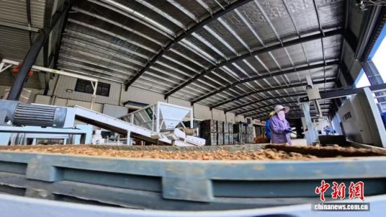 4月18日,湖北省当阳市庙前镇水稻育秧基地内,育秧生产线正全速运转,为谷雨插秧做准备。 方梓轩 摄