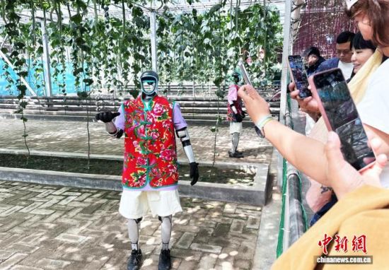 4月20日,第二十七届中国(寿光)国际蔬菜科技博览会在山东寿光开幕。图为人形智能机器人展示。沈广安 摄