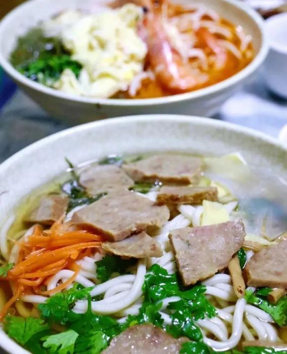 鸡鸭和乐:粗面筋道,配料丰富,老汤鲜浓,一口入魂,尽显潍县面食功力。