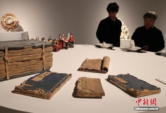 观众欣赏作品《古籍》。赵晓 摄