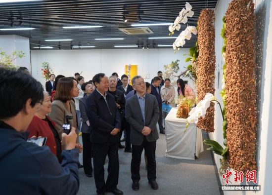 中医药领域专家和知名花艺师参观展览。山东中医药大学供图