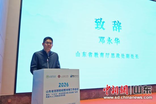 山东省教育厅思想政治工作处副处长邓永华出席会议并讲话。他强调,高职图书馆作为职业教育的重要文化阵地,要以人工智能为智慧引擎,以产教融合为发展根基,加快推进从传统文献服务中心向文化育人中心、知识服务中心、创新支持中心的转型跨越,用书香浸润校园、用文化涵养匠心,着力培育新时代“齐鲁工匠”,为职业教育高质量发展注入文化动能。