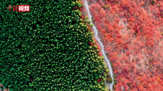 似“鸳鸯火锅” 一起看济南蝎子山“半山翠绿半山红”