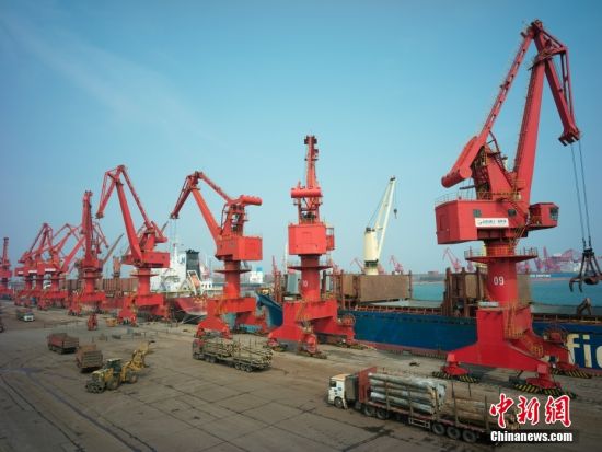10月27日,中国首座40万吨干散货数智码头在山东青岛投产。该码头是山东港口青岛港第二座40万吨矿石码头,实现了全流程生产经营过程的实时监测、智慧决策和数字化感知,填补了中国国内超大型干散货码头数智化运营的空白。图为船舶在码头进行卸船作业。10月27日,中国首座40万吨干散货数智码头在山东青岛投产。
