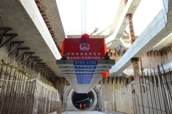 中新网山东新闻10月24日电(张孝鹏)青岛轨道交通线网建设持续提速。24日,在青岛地铁2号线常川路铺轨基地施工现场,两台32米大跨度起重龙门吊将首组轨排平稳吊入洞内——这一关键节点的完成,标志着青岛地铁2号线二期工程正式进入全线铺轨阶段,项目全面启动站后工程建设的崭新篇章,青岛地铁三期工程建设迈出实质性步伐。