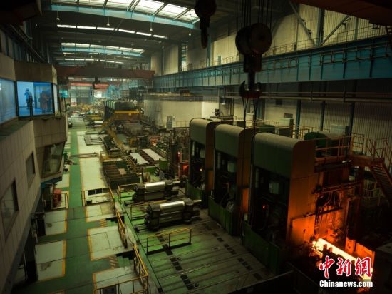 图为5月22日拍摄的日照钢铁控股集团ESP生产线,从钢水到钢卷,传统热轧生产线流程需要3小时,而现在的ESP生产线只需7分钟。中新社记者 盛佳鹏 摄